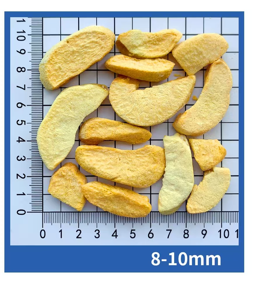 - Vacuum freeze-dried: water in the fruit is frozen and then sublimated at low temperature, maintaining the original shape and internal structure.